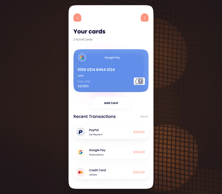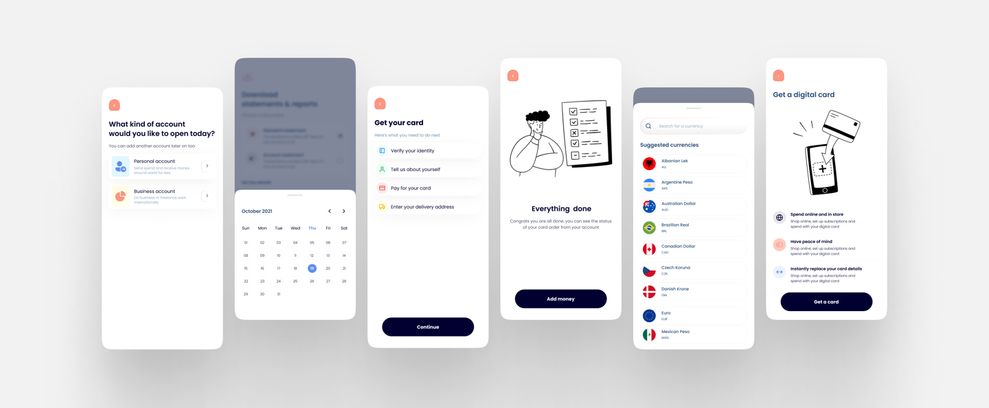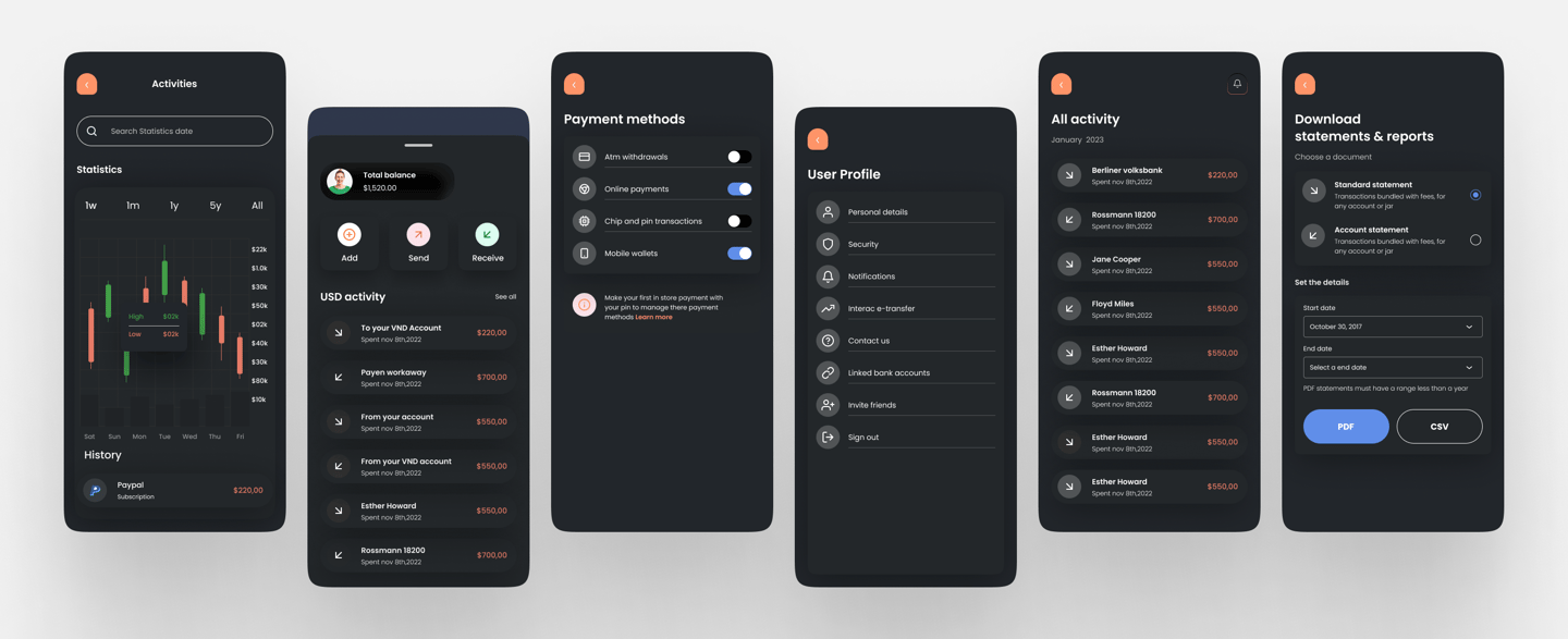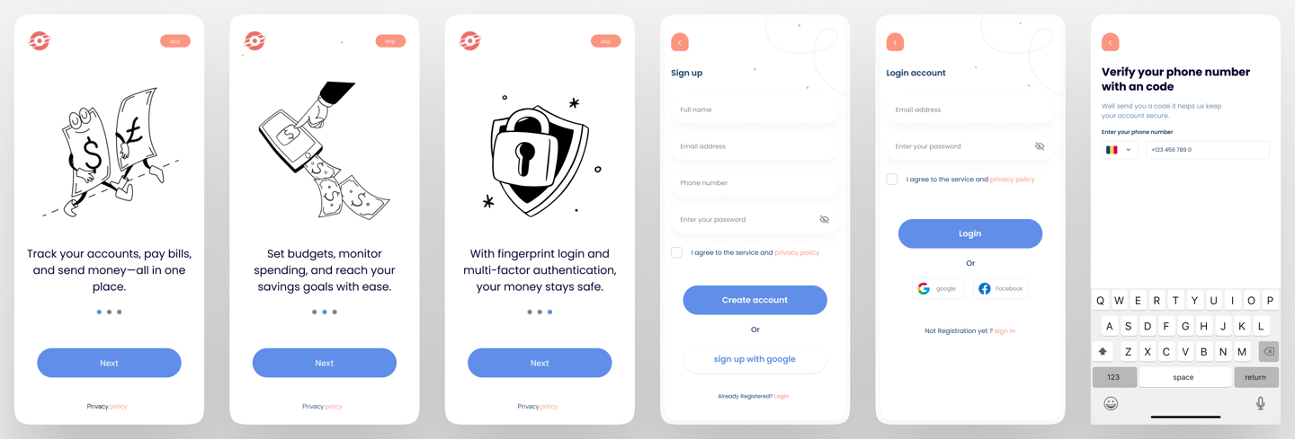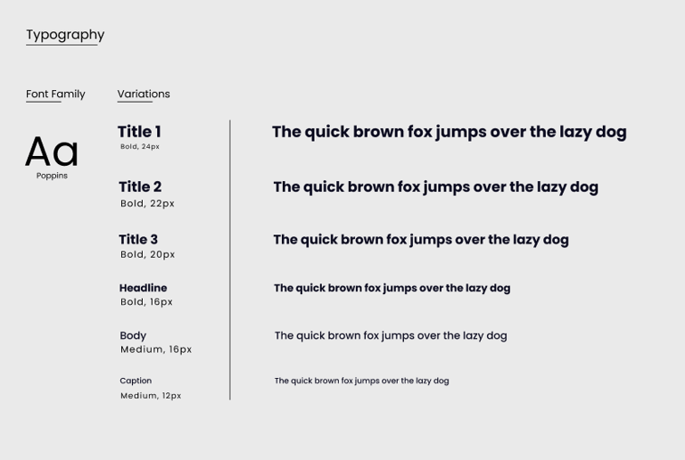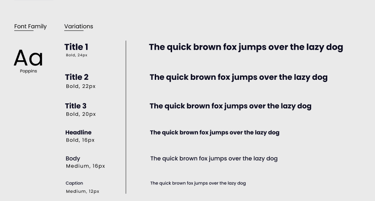 We selected Poppins, a geometric sans-serif typeface, for its clean, contemporary feel and strong visual presence. Its rounded shapes and consistent stroke width give the interface a sense of modernity and friendliness -perfect for a forward-thinking digital bank.