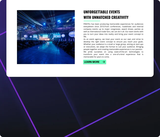 With a focus on bringing ideas to life, PirateX works closely with clients to design events that meet their goals and connect with their audience. Using modern technology and creative concepts, they make every event an unforgettable experience.