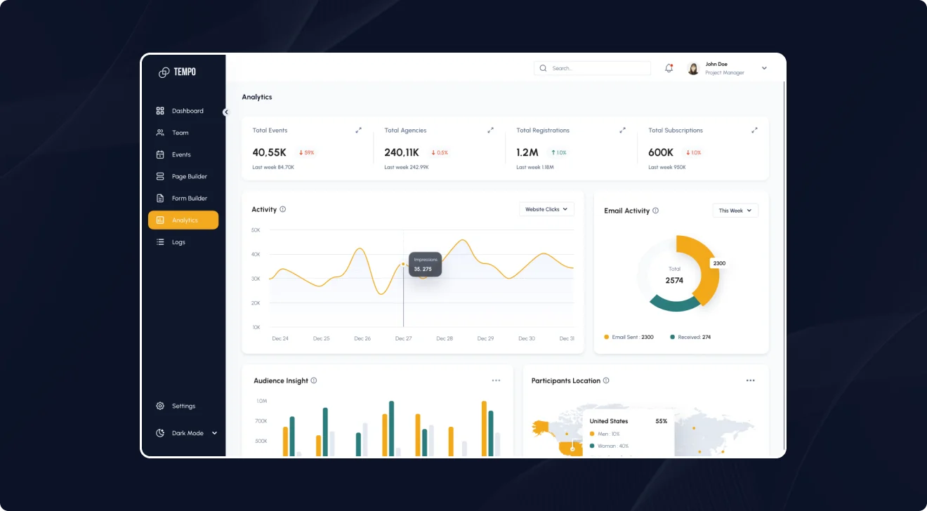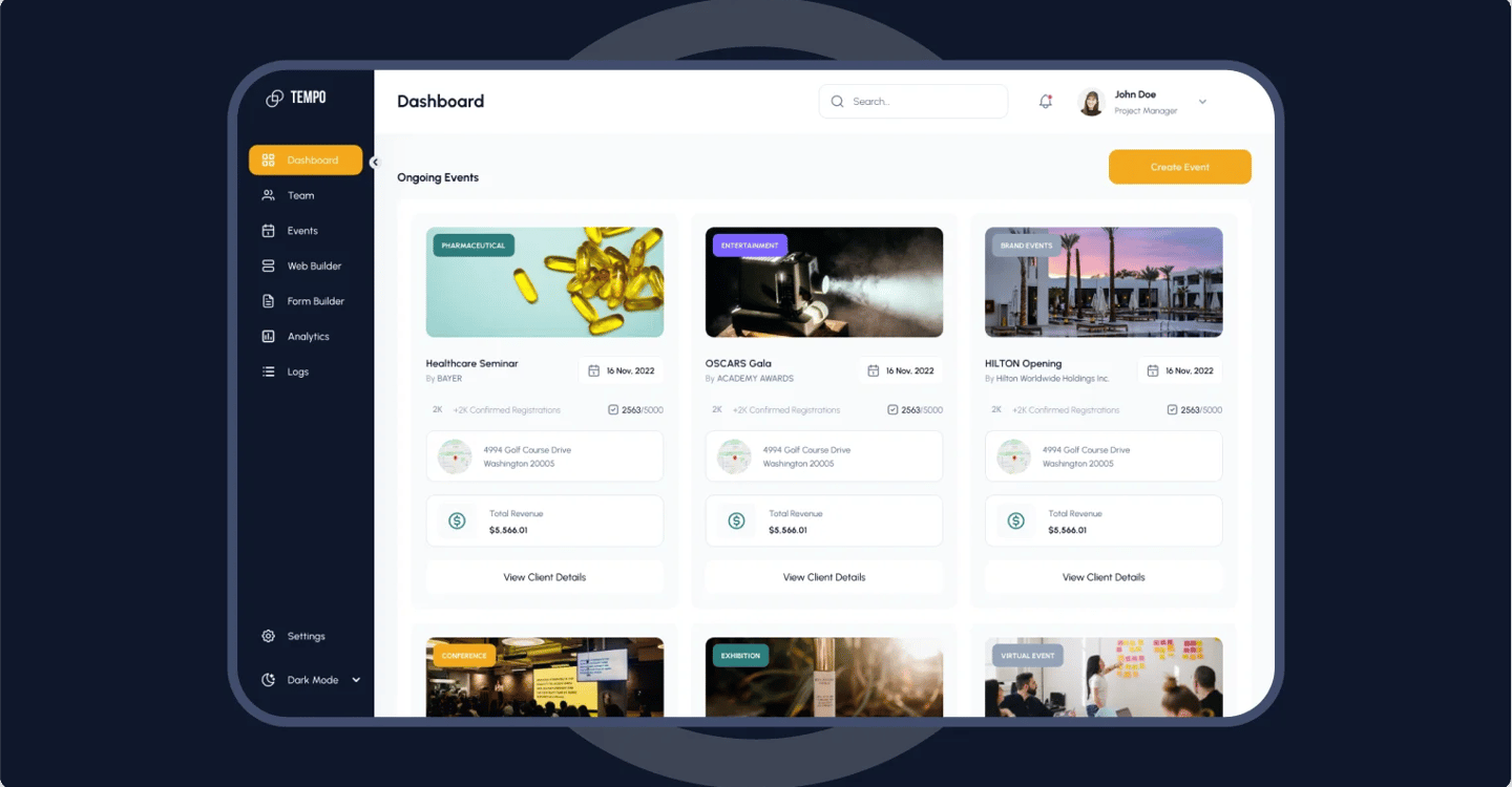As the product designer for TEMPO, I focused on creating an intuitive user experience and clean, responsive interfaces. My goal was to simplify complex workflows, enabling users to focus on what matters most: hosting successful events.